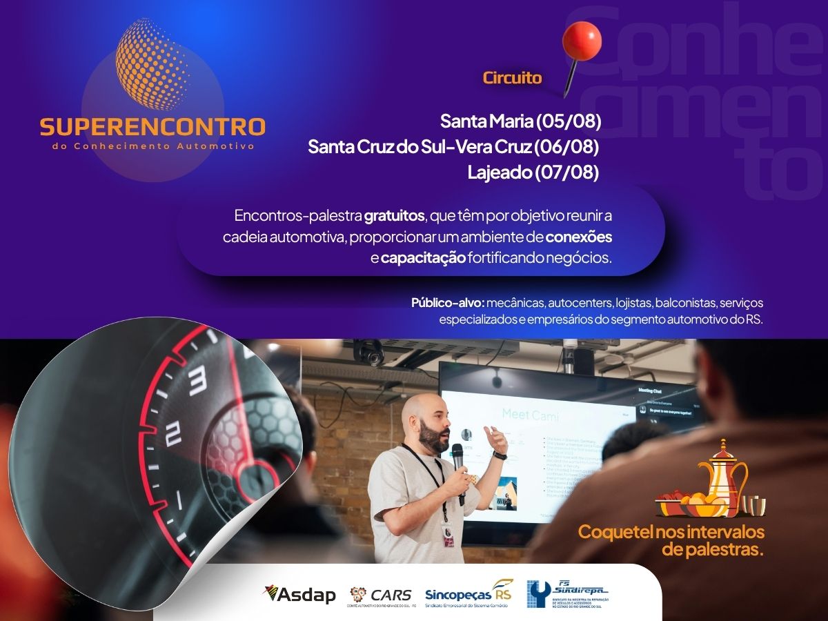 Inscrições gratuitas AQUI Primeira edição contemplará Santa Maria / Santa Cruz do Sul – Vera Cruz / Lajeado. O setor automotivo, com a ascensão de novas tecnologias, assim como demais nichos, precisa estar atento e acompanhar o mercado. Mas também é fundamental aprimorar áreas que sustentam os negócios como: fiscal, comercial, gestão e técnicas automotivas. […]